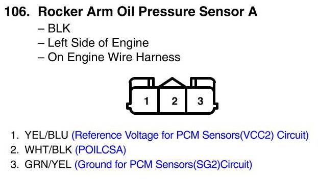 Rocker Arm Oil Pressure Sensor A Connector View