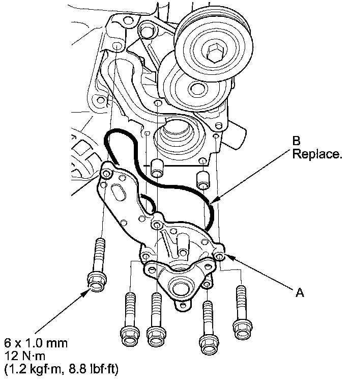 Five bolts securing the water pump (A)