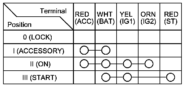 5. If the continuity is not as specified, replace the ignition switch Service and Repair.