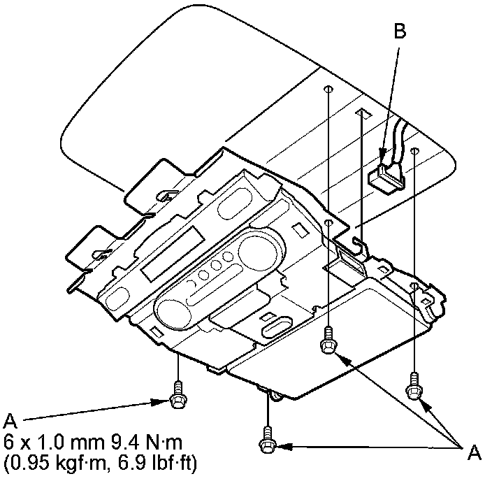 2. Remove the mounting bolts (A) and disconnect the connector (B) from the rear controller and screen.