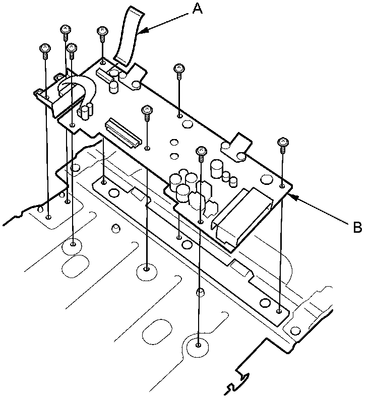 9. Disconnect the cable (A), then remove the screws and the rear control printed circuit board (B).