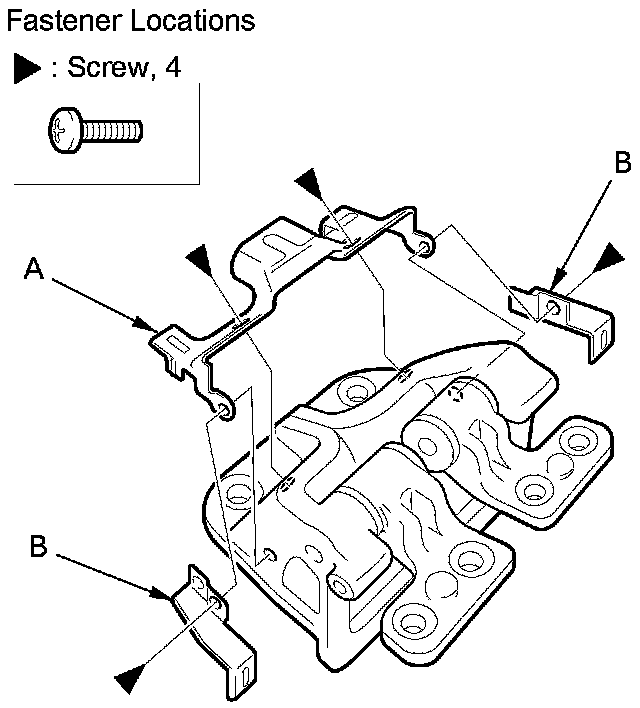 2. Remove the screws, then remove the center pivot cover brackets (A, B).