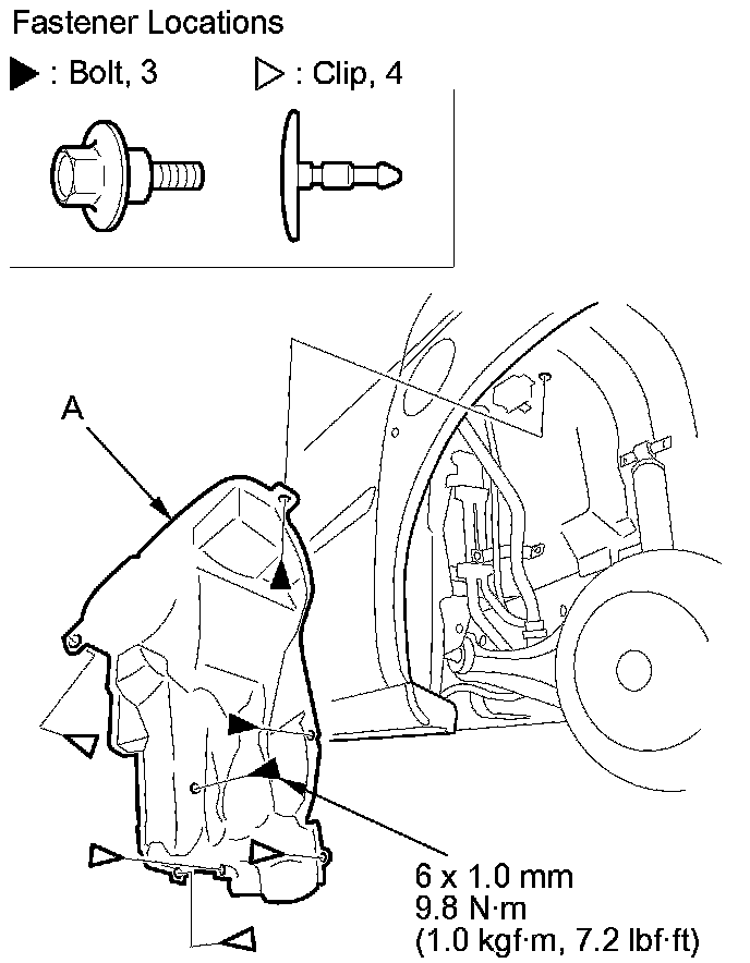 2. Remove the bolts and detach the clips, then remove the fuel pipe protector (A).