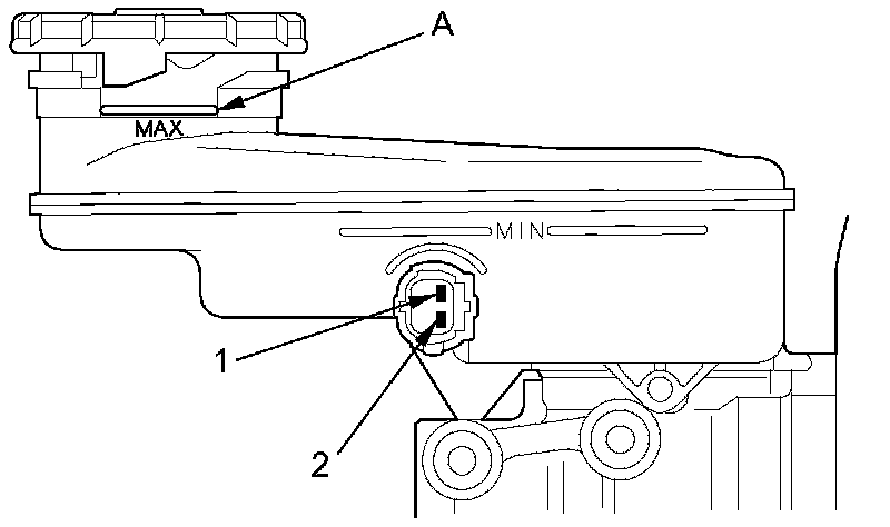 - Fill the reservoir with brake fluid to the MAX (upper) level (A). With the float up, there should be no continuity.