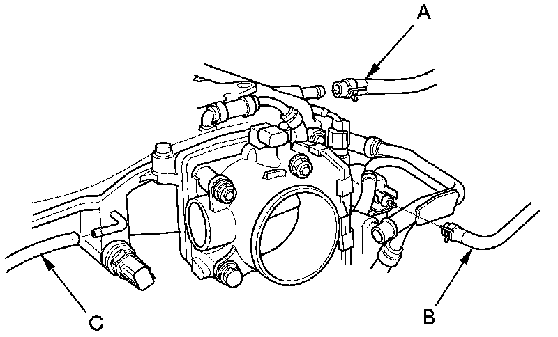 16. J35A6 engine: Disconnect the vacuum hose (C).