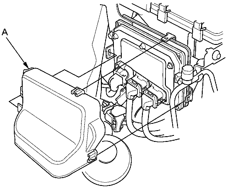 21. Remove the powertrain control module (PCM) cover (A).
