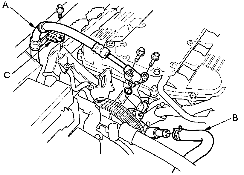 27. Remove the P/S hose bracket (C) from the cylinder head cover.
