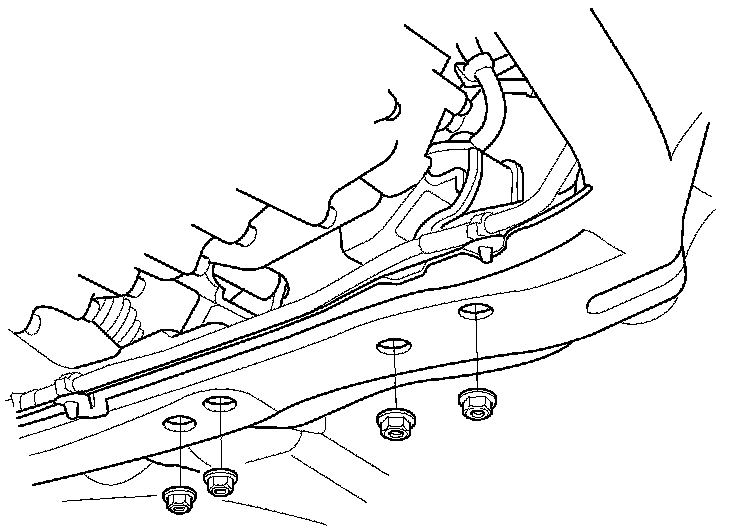43. Remove the nuts securing the lower transmission front mount and the lower transmission rear mount.