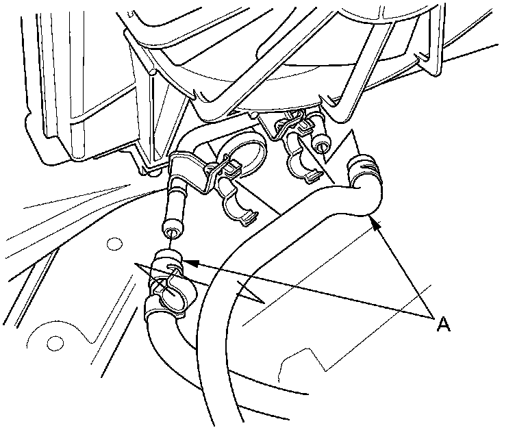 49. Disconnect the ATF cooler hoses (A), then plug the ATF cooler hoses and the lines.
