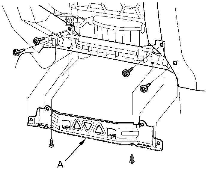 3. Cut the plastic cross brace (A) in the glove box opening with diagonal cutters in the area shown, and discard it.