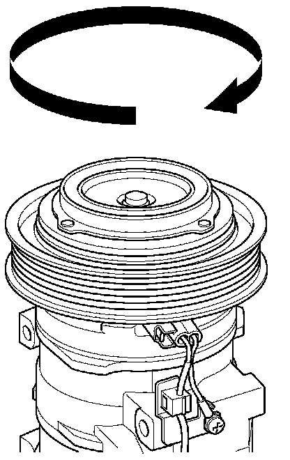 5. Inspect the friction surfaces and the A/C compressor shaft hub for excess oil. If excess oil is present, and it is not from the engine or power steering system, then the A/C compressor shaft seal is leaking. In that case, replace the A/C compressor A/C Compressor Replacement (Without Climate Control).