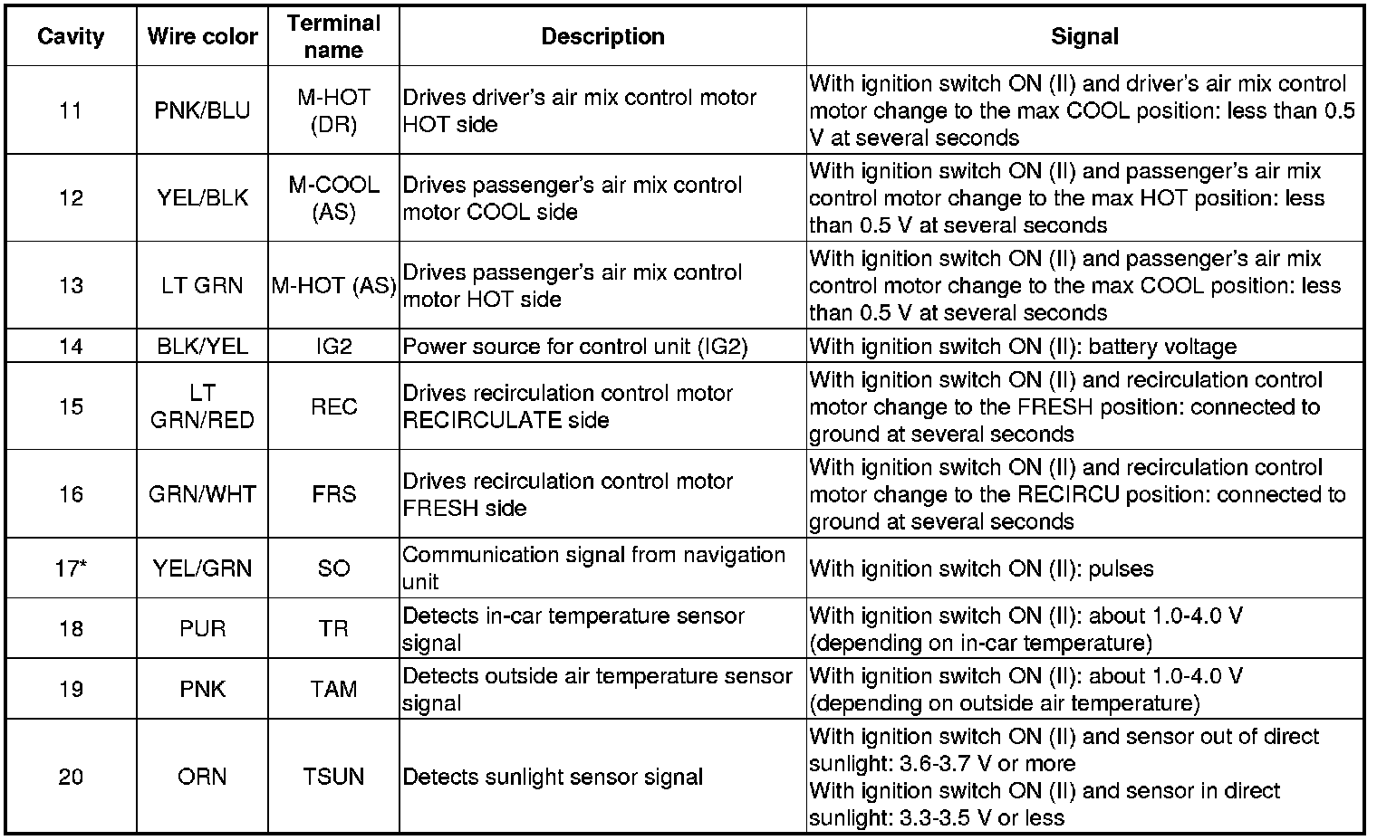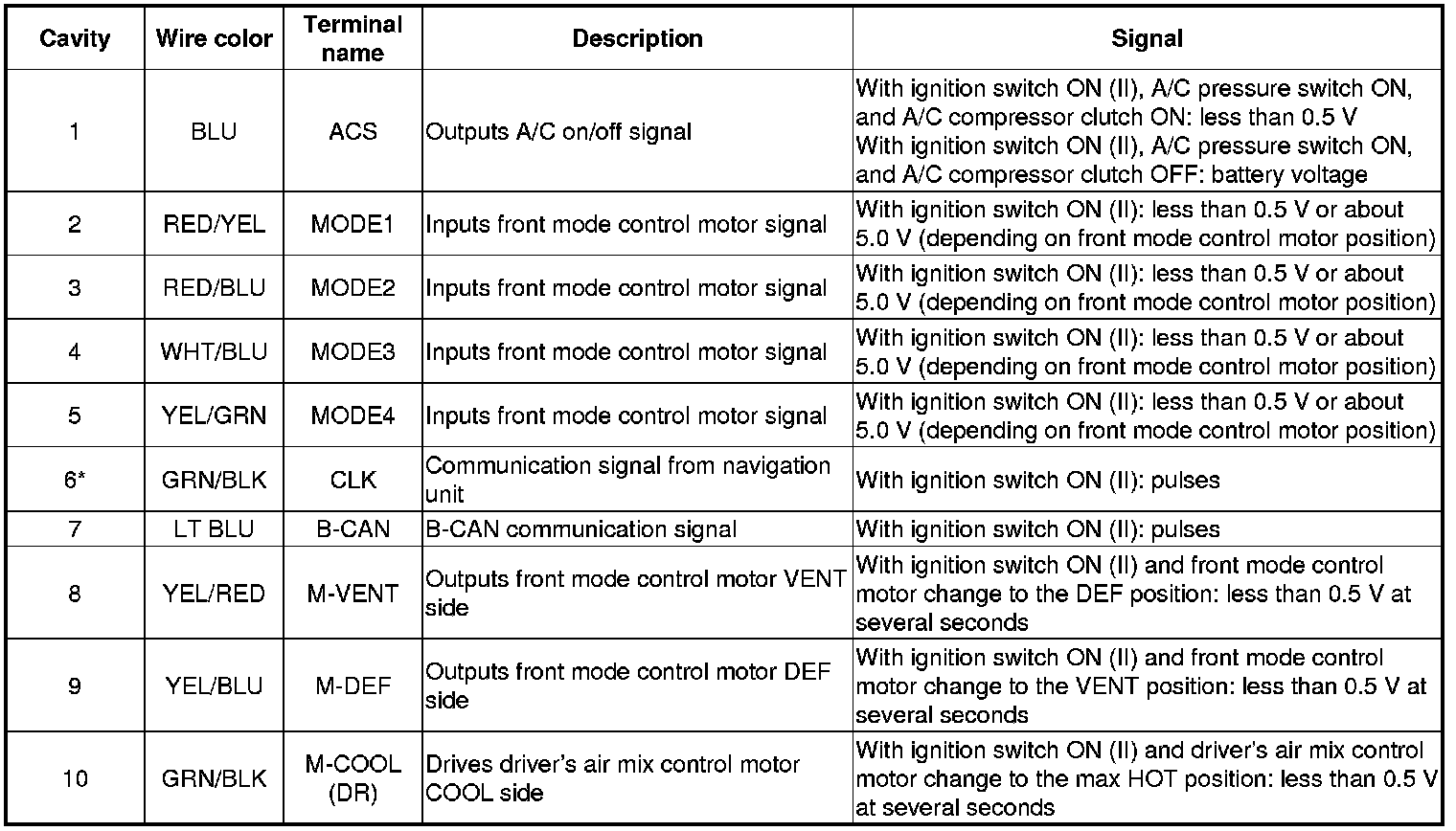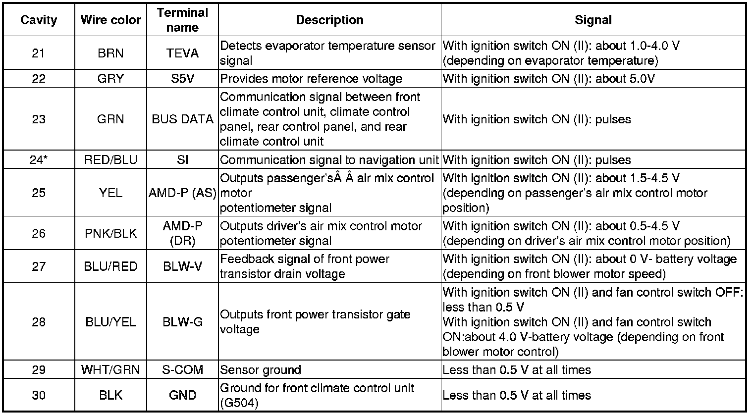 FRONT CLIMATE CONTROL UNIT 30P CONNECTOR