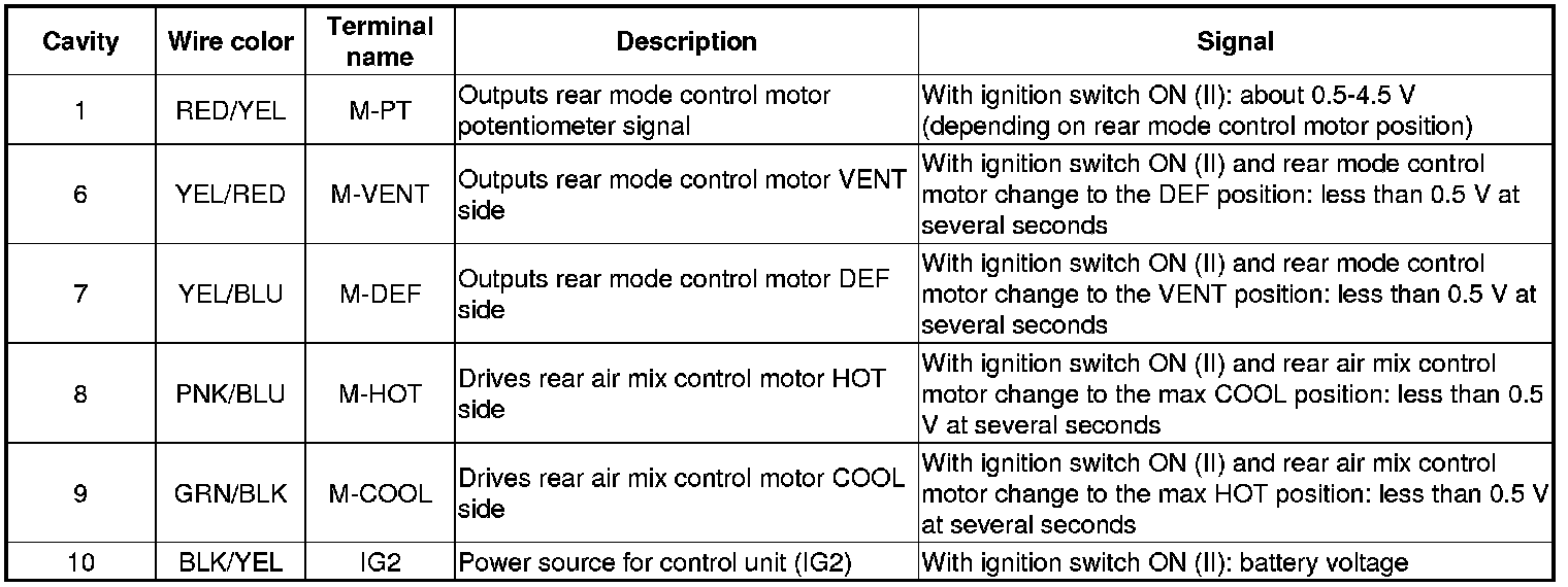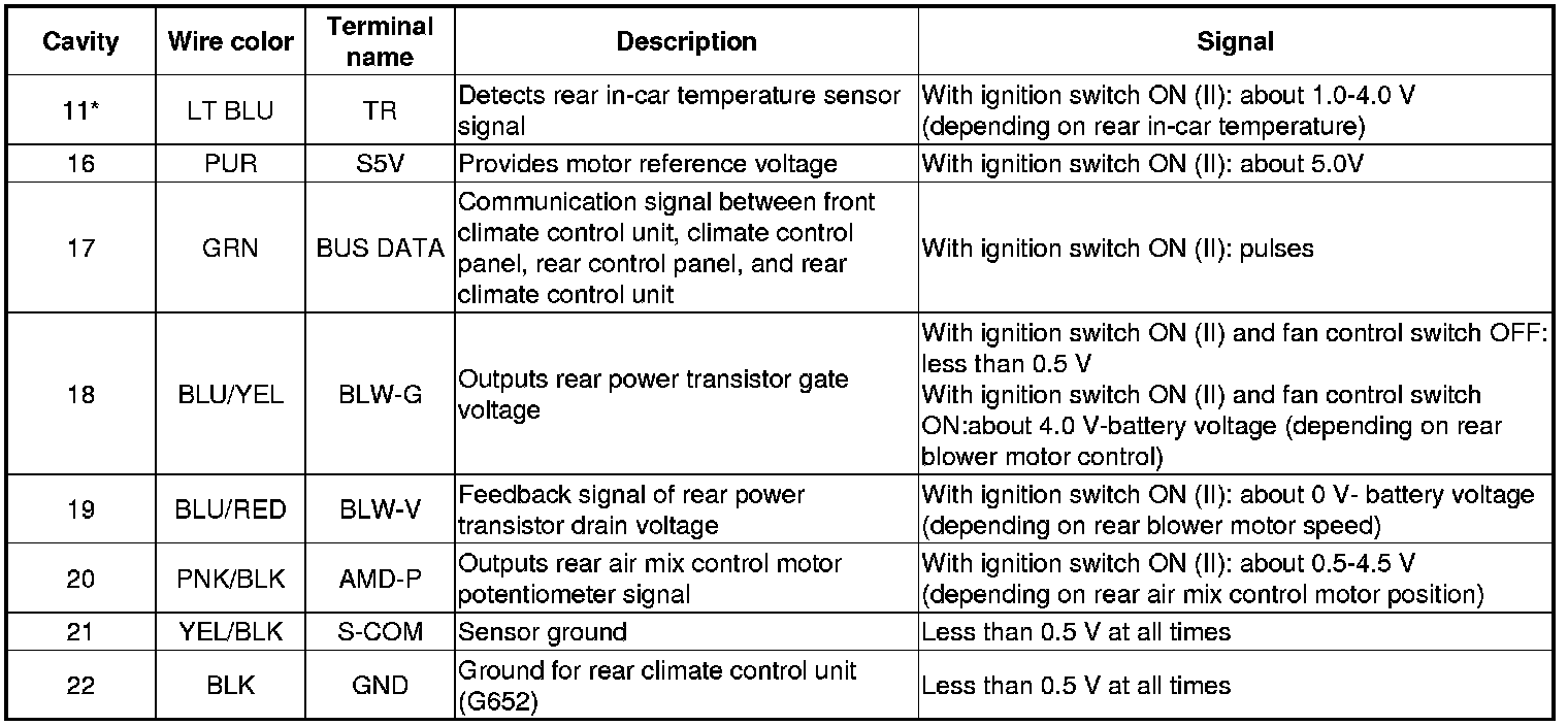 REAR CLIMATE CONTROL UNIT 22P CONNECTOR