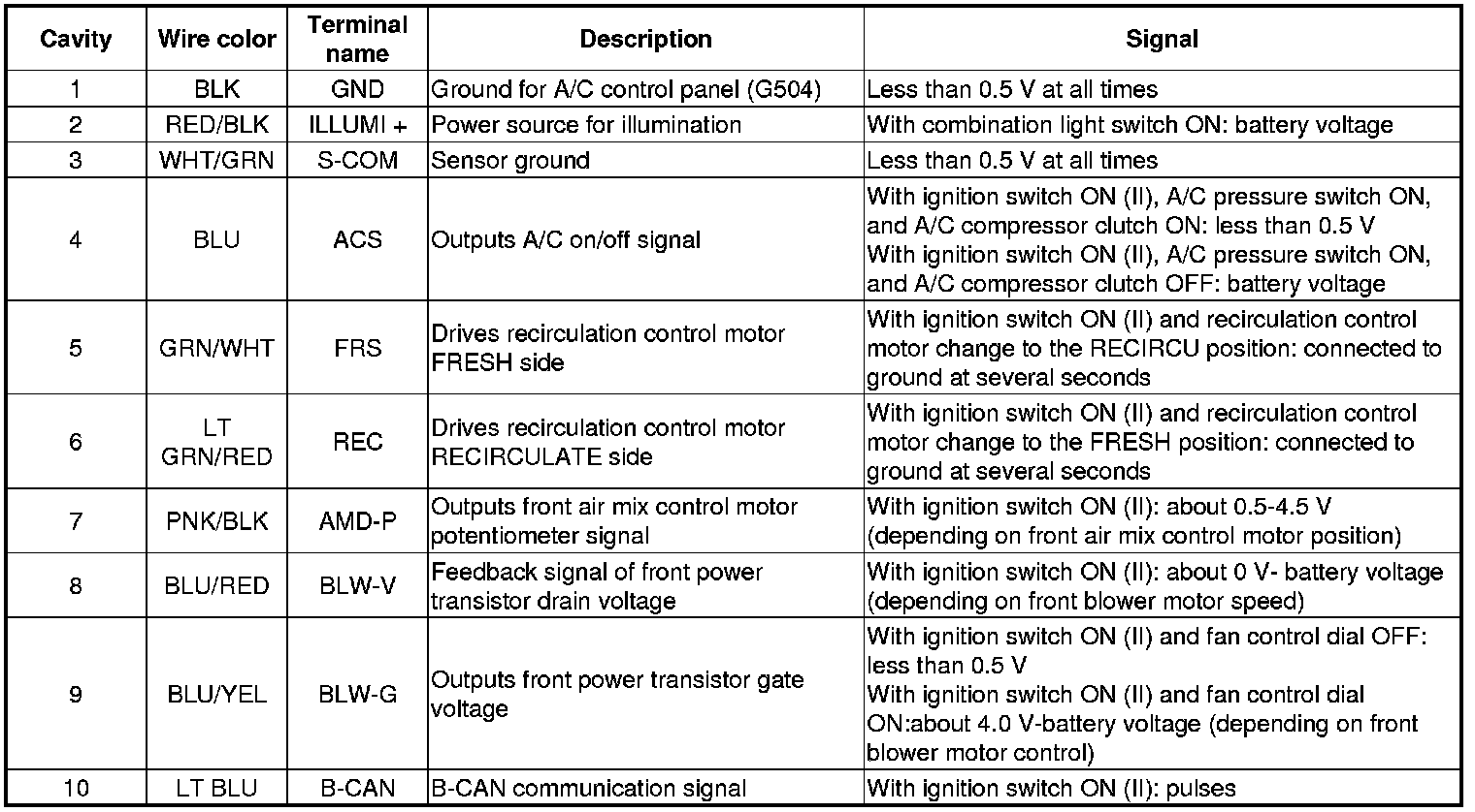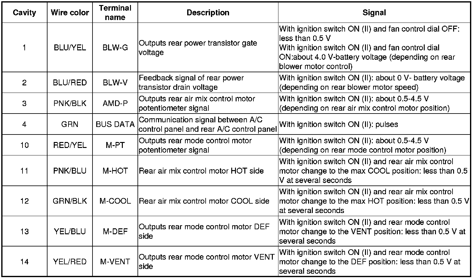 A/C CONTROL PANEL CONNECTOR B (14P)