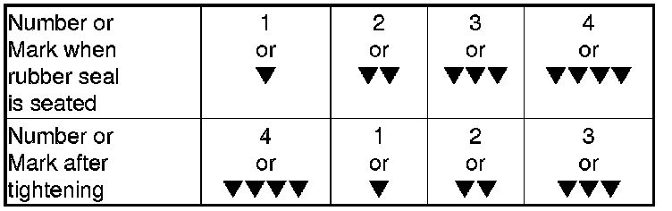 - Tighten the filter by turning it clockwise three numbers or marks from the one you noted. For example, if mark V is at the bottom when the seal is lightly seated, tighten the filter until the mark VVVV comes around to the bottom.