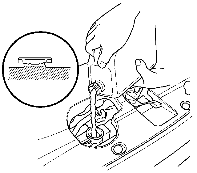 9. Pour Honda Long Life Antifreeze/Coolant Type 2 into the radiator up to the base of the filler neck.