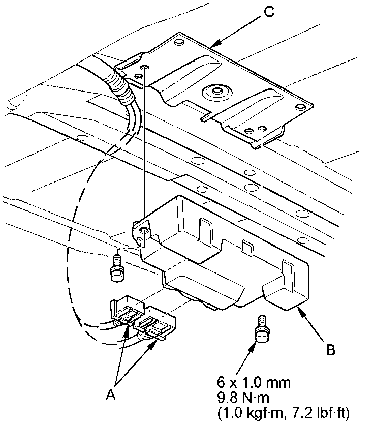 4. Remove the TPMS control unit (B) from the bracket (C).