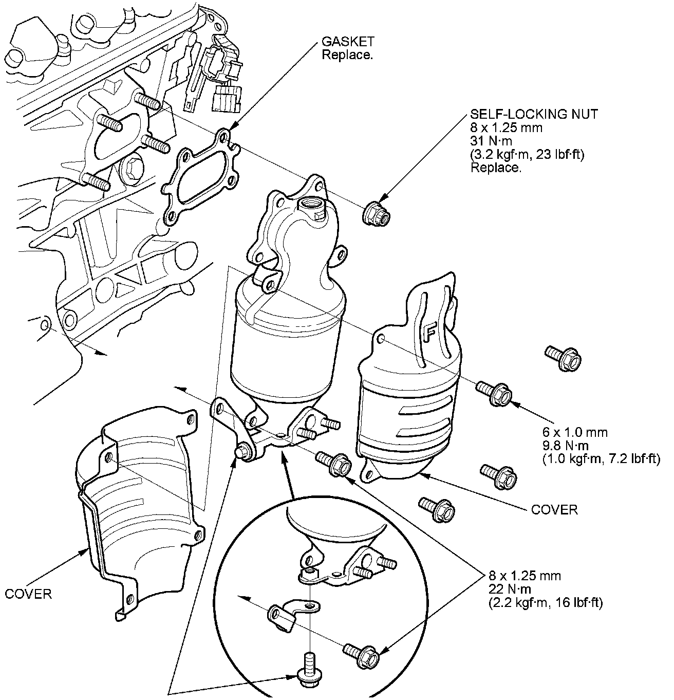 5. Remove the rear A/F sensor (Sensor 1) A/F Sensor Replacement and the rear secondary HO2S (Sensor 2) Secondary HO2S Replacement.