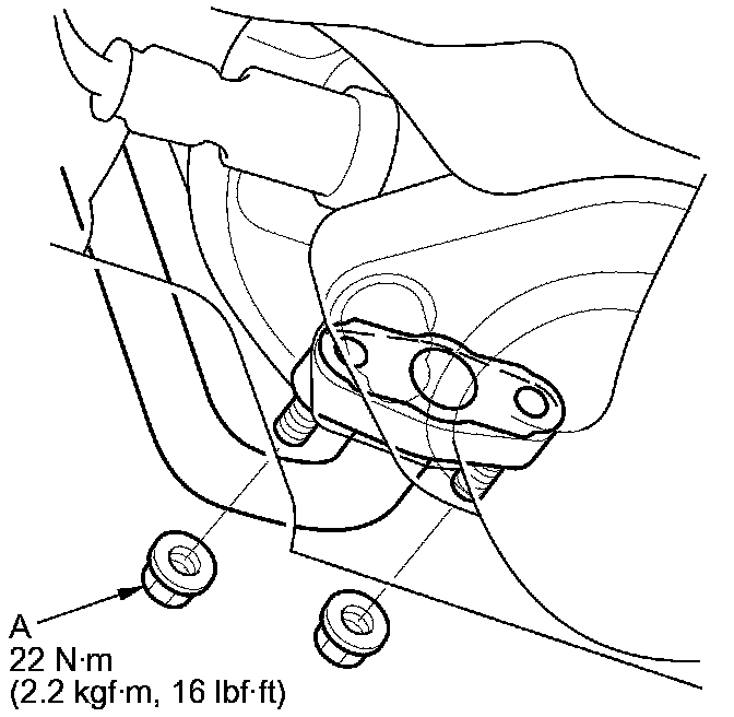 3. Remove the EGR pipe mounting nuts (TWC side) (A).
