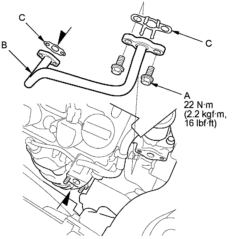 7. Install the parts in the reverse order of removal with new gaskets (C).