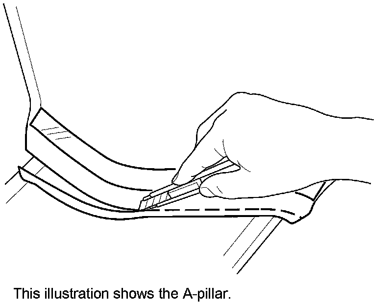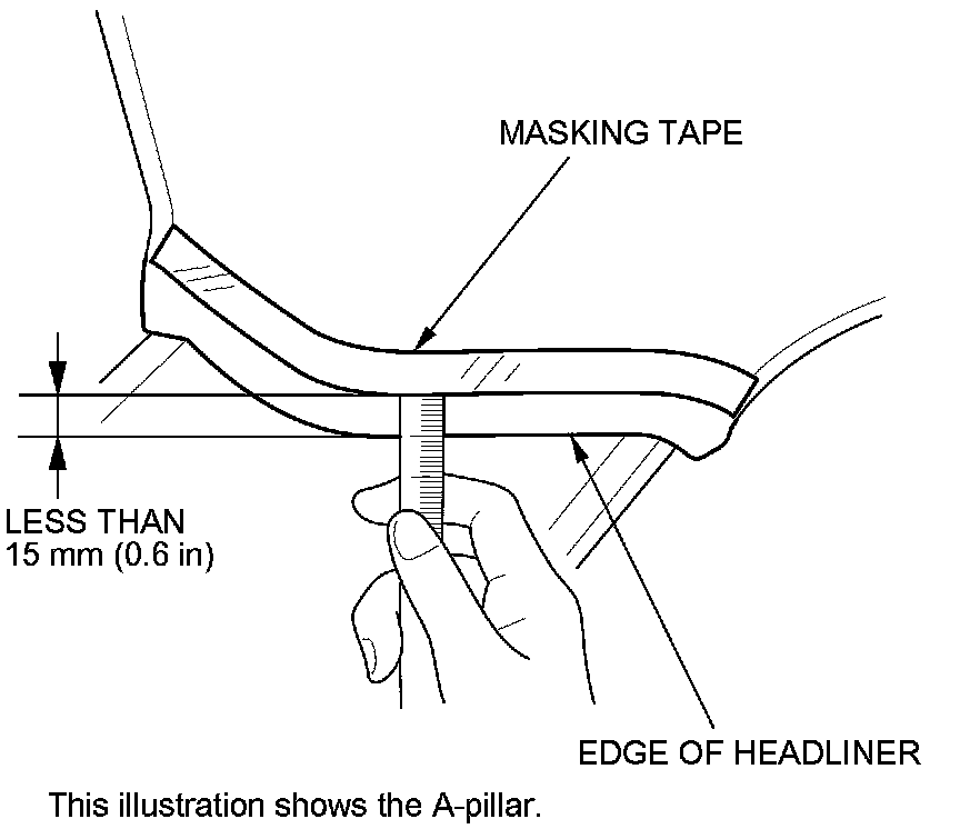 2. Apply masking tape to the headliner to mark the upper edge of each pillar trim.