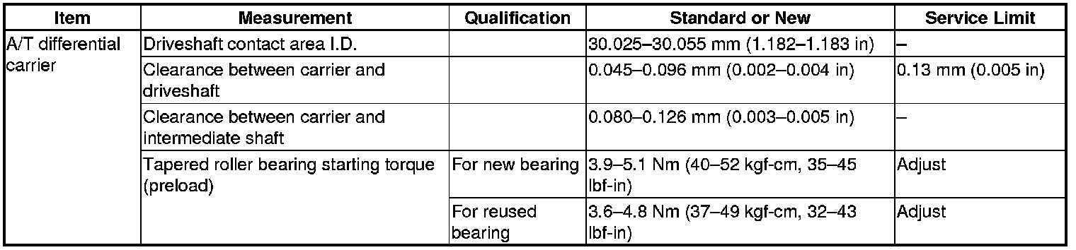 A/T Differential Carrier Specification(s)