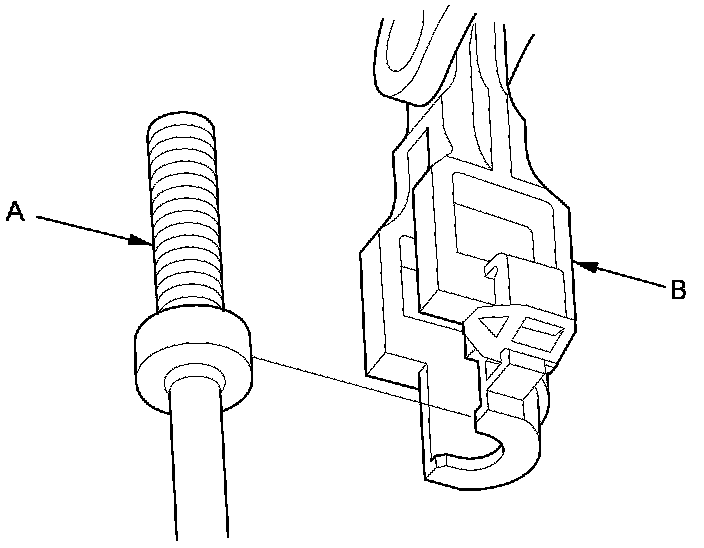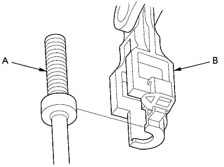 4. Slide the lock tab (A) down on the shift cable end holder (B).