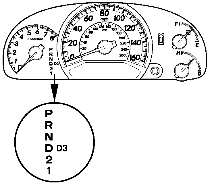 24. Shift the shift lever to each position, and check that the A/T gear position indicator follows the transmission range switch.