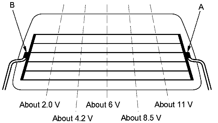 2. Measure the voltage between the negative terminal (B) and body ground. There should be less than 0.2 V.