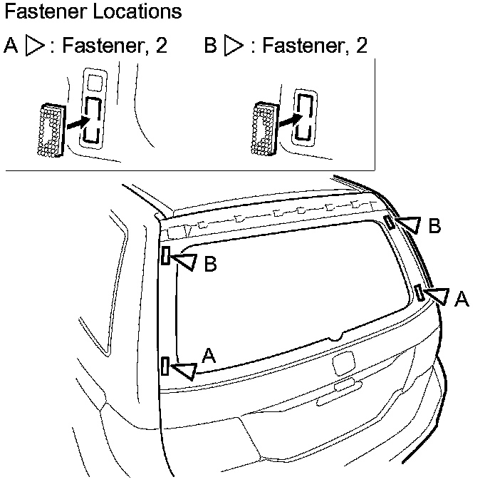 11. Attach the fasteners (A, B) with adhesive tape to the tailgate as shown.