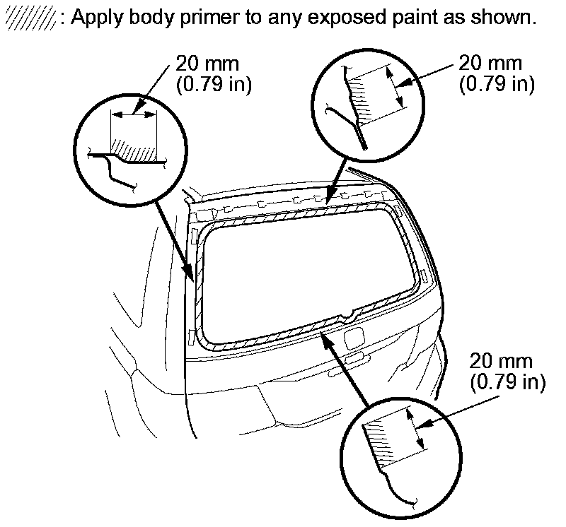 - Never touch the primed surfaces with your hands. If you do, the adhesive may not bond to the rear window properly, causing a leak after the rear window is installed.