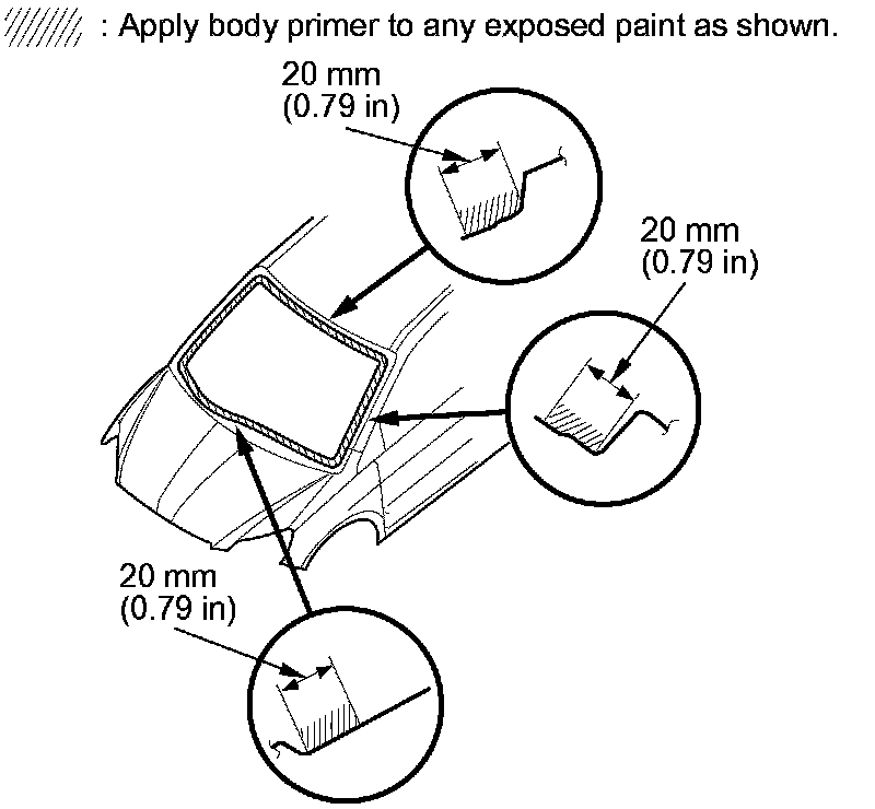 - Do not apply body primer to the windshield, and do not mix up the body and glass primer applicators.