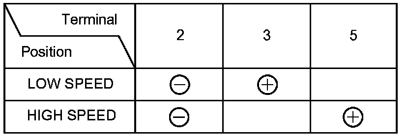 4. Test the motor by connecting battery power and ground according to the table. If the motor does not run or fails to run smoothly, replace the motor.