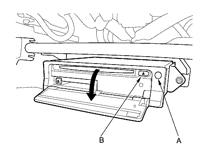 2. Push the open button (A) of the navigation unit located under the driver's seat.