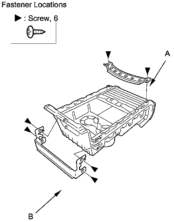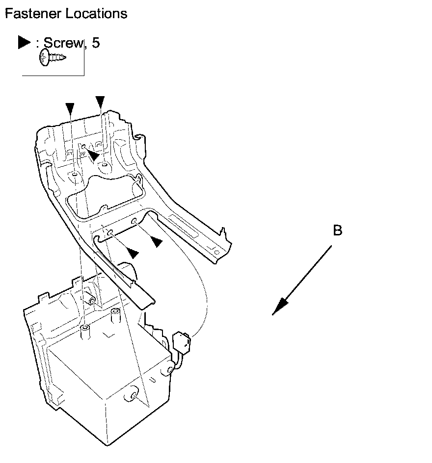 5. Remove the screws, then remove the center console front cross bar (A) and center console middle bracket (B).