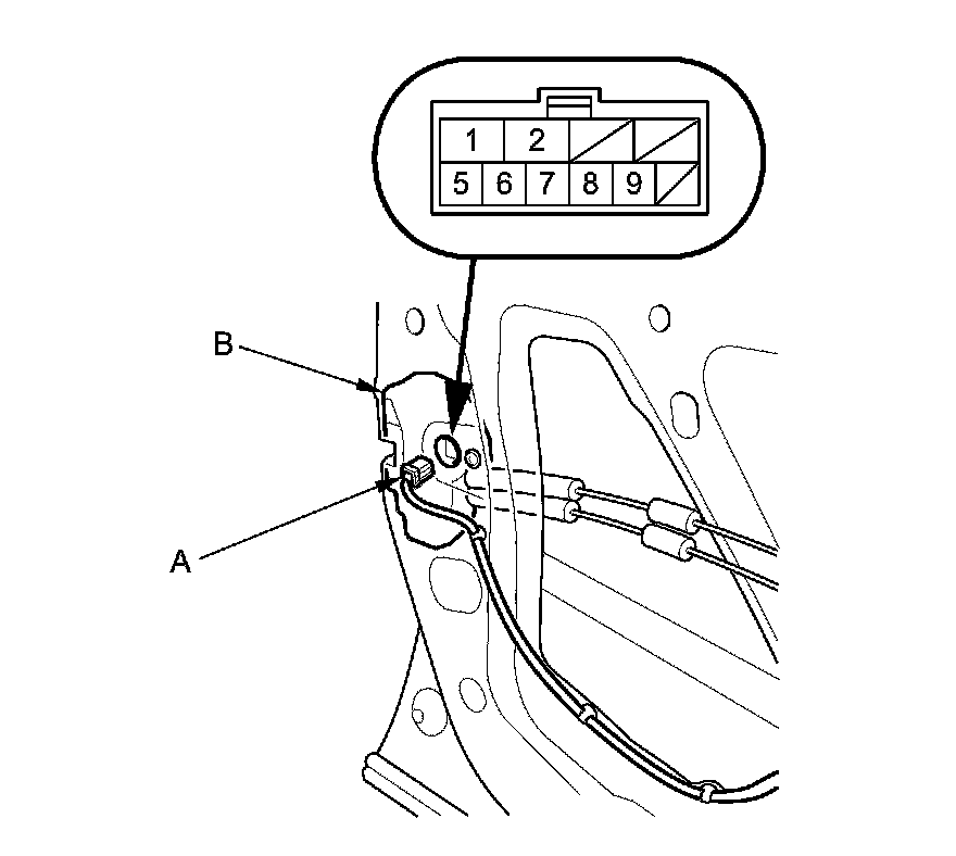 - There should be continuity between terminals No. 9 and No. 5 when the door key cylinder switch is in LOCK position.