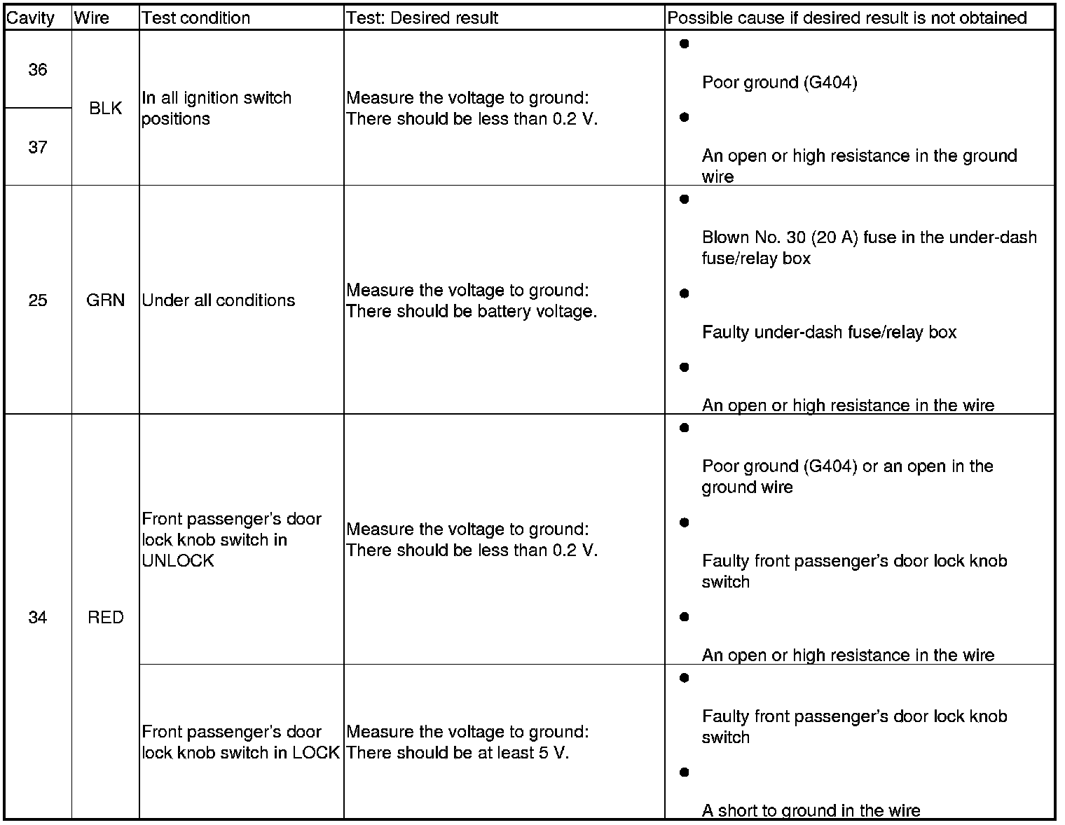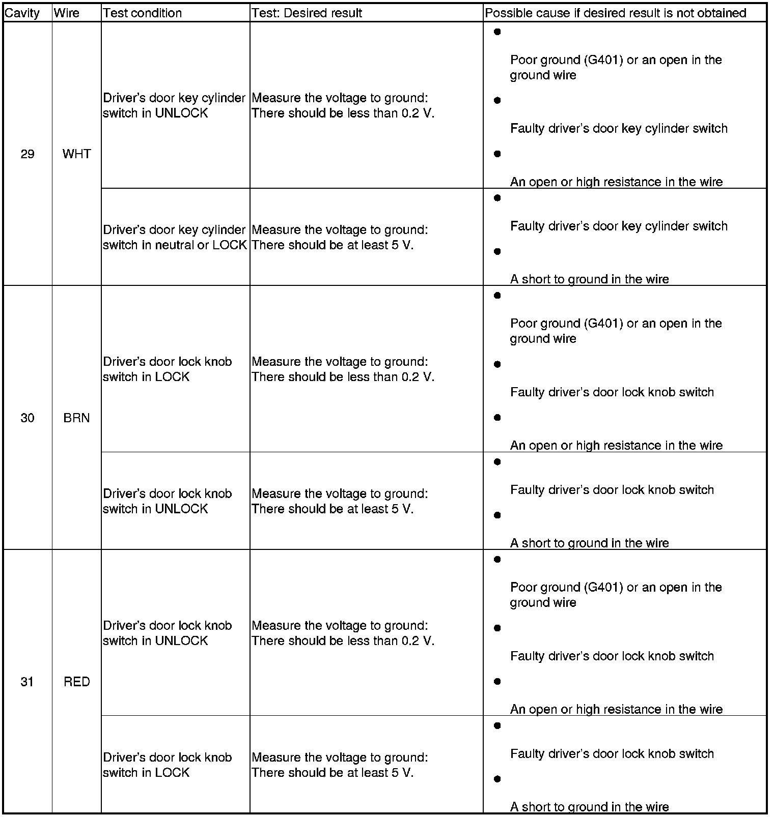 Keyless/Power Door Locks/Security System (MICU and Door Multiplex Control Unit) Input Test