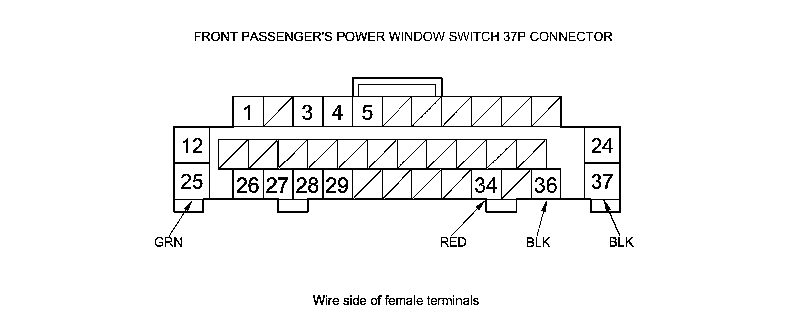 12. Disconnect the 37P connector from the front passenger's power window switch.