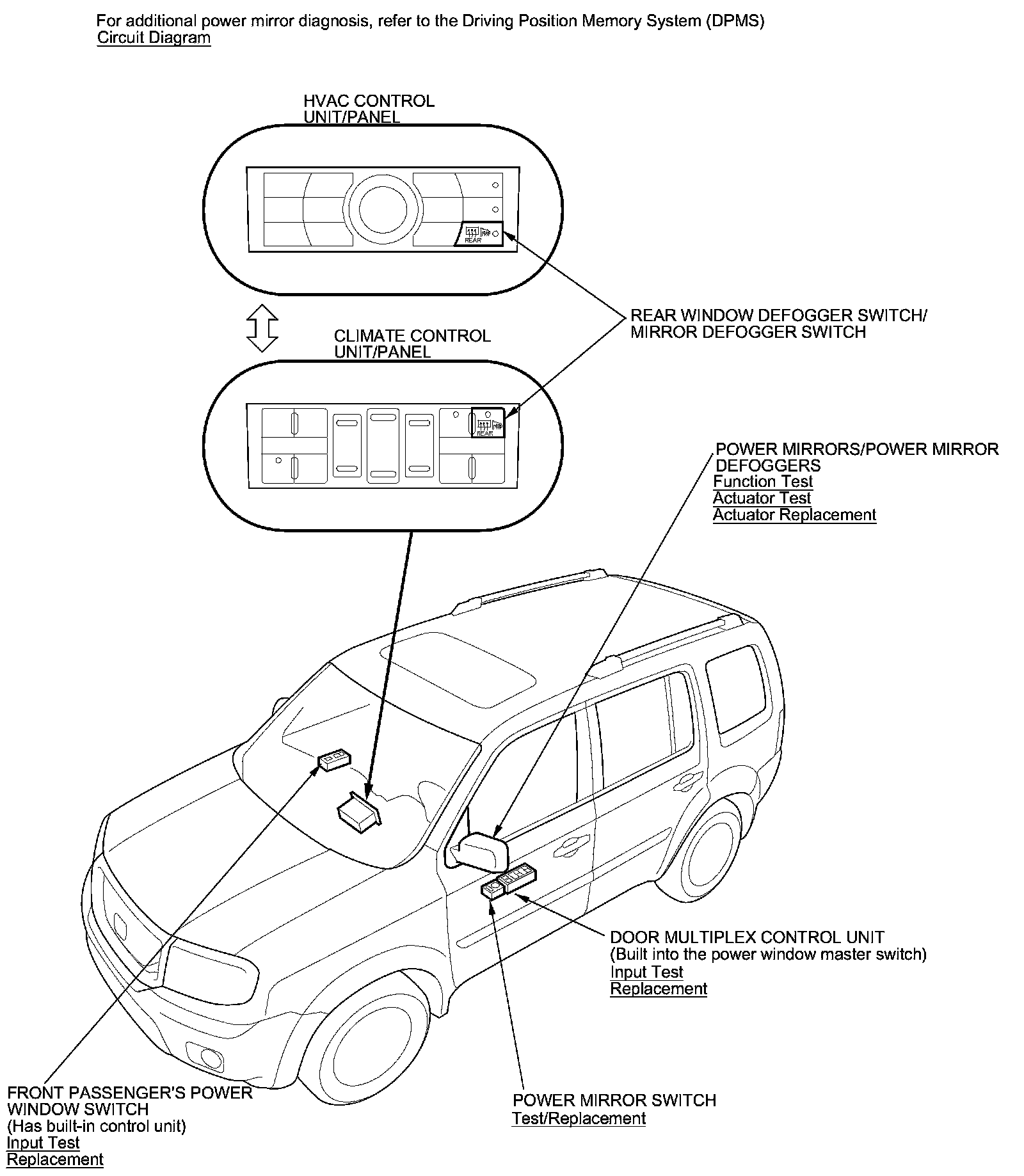 Power Mirrors Component Location Index
