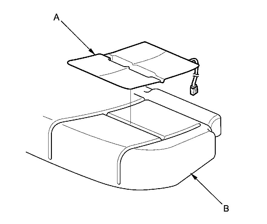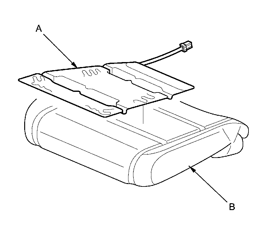 2. Carefully remove the seat cushion heater (A) from the seat cushion pad (B).