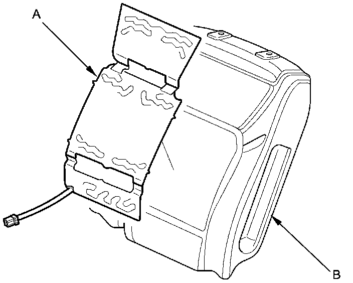 2. Carefully remove the seat-back heater (A) from the seat-back pad (B).