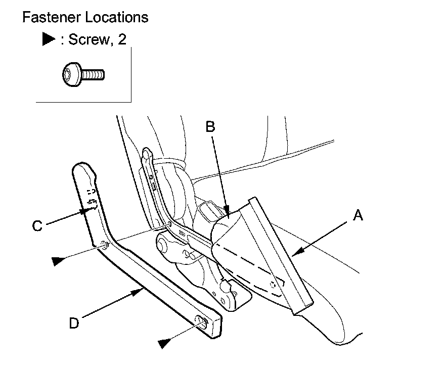 3. Remove the TORX screws, and release the hook (C), then remove the pivot bolt cover (D).