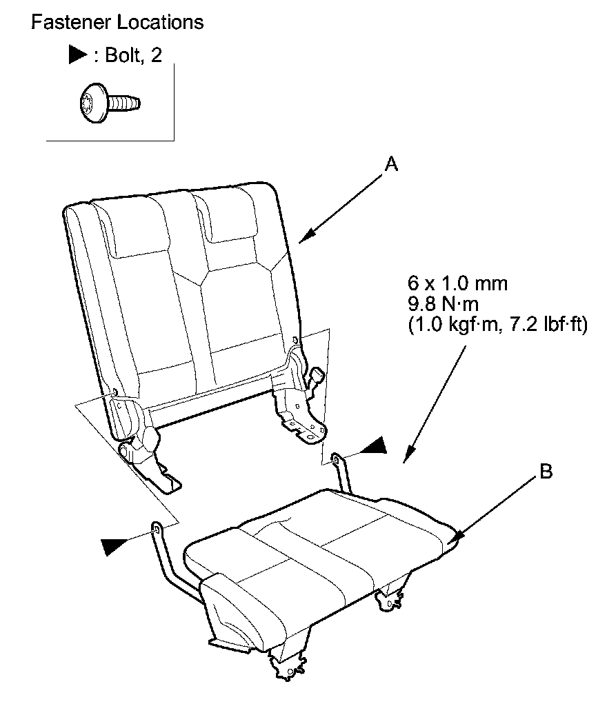 4. Remove the pivot bolts securing the seat-back (A) and seat cushion (B) with the TORX T30 bit, then separate them.