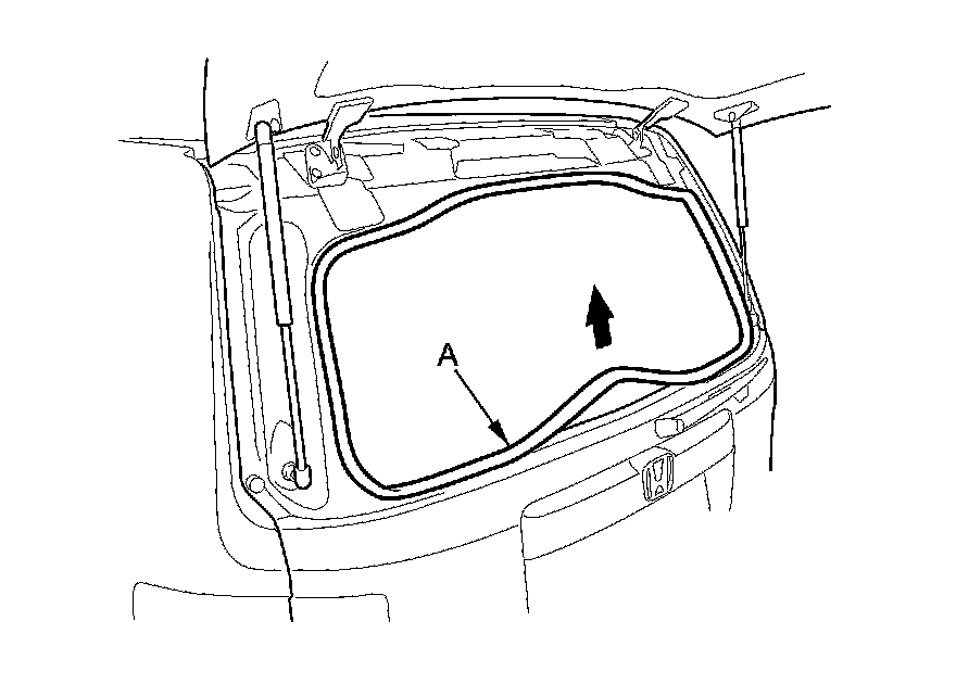 3. Remove the hatch glass weatherstrip (A) by pulling it out.