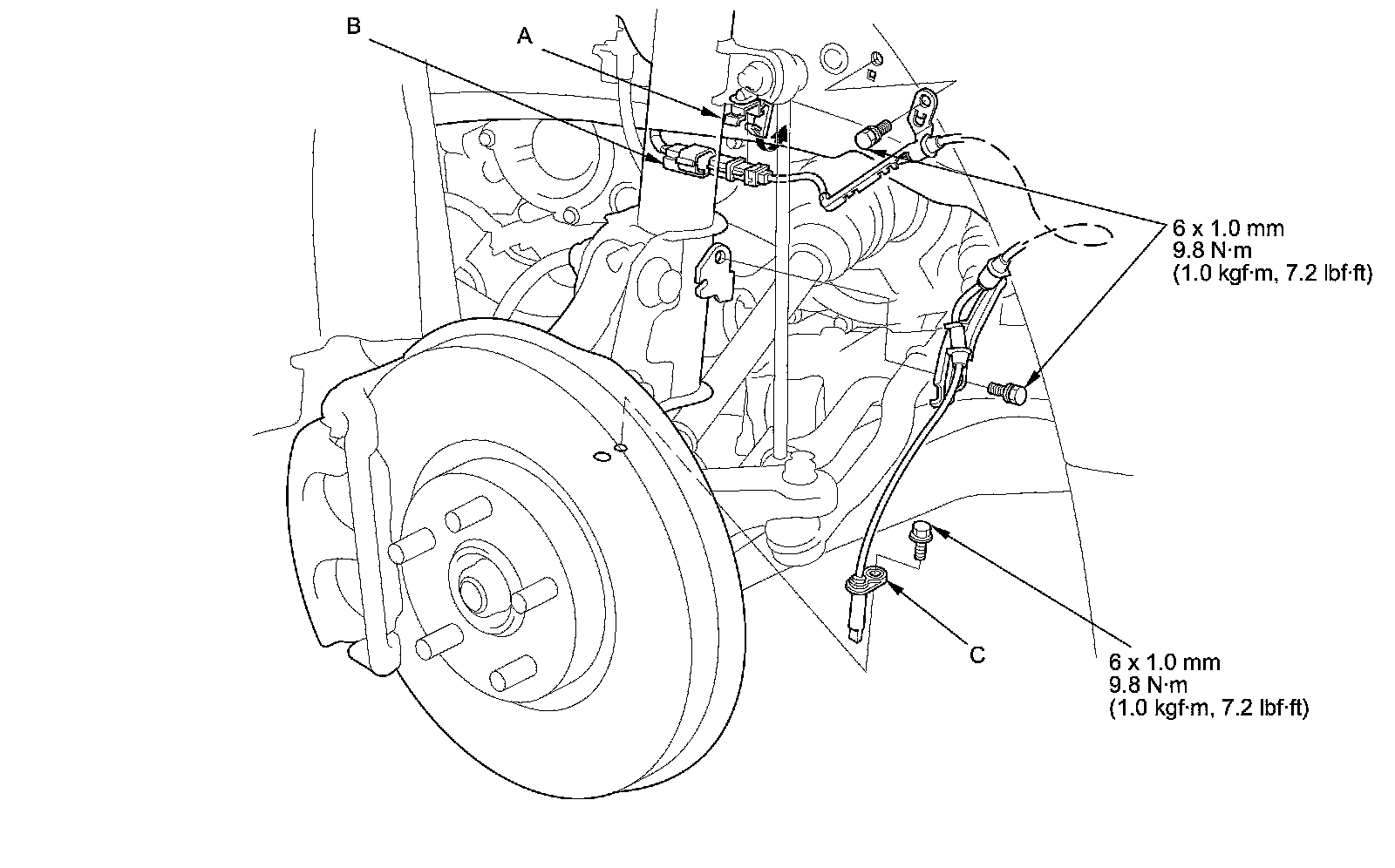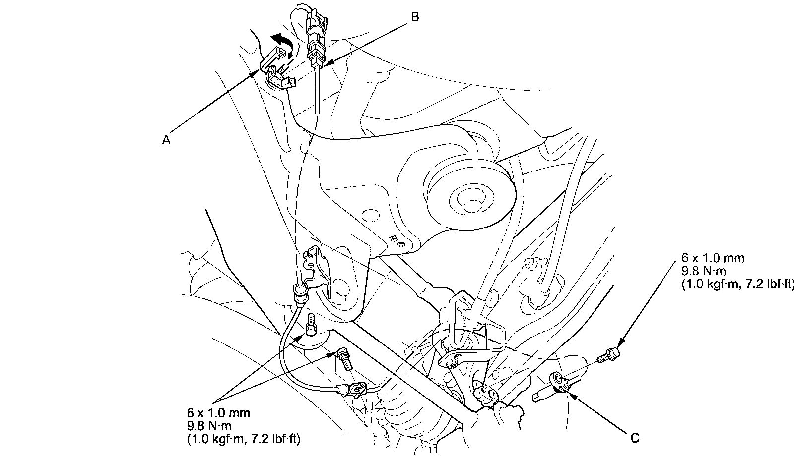 4. Install the wheel speed sensor in the reverse order of removal, and note these items: