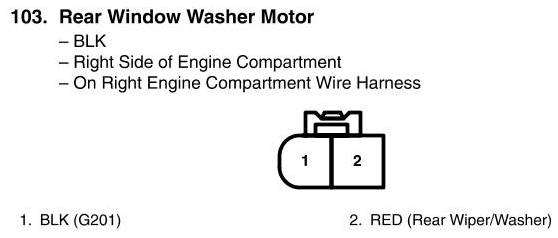 View 103 - Rear Window Washer Motor Connector View