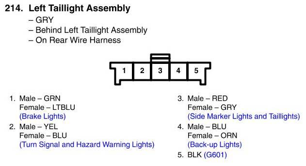View 214 - Left Taillight Assembly Connector View