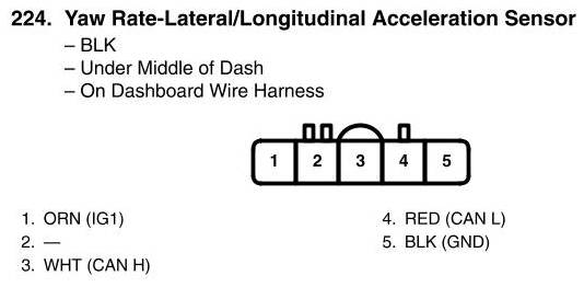 View 224 - Yaw Rate-Lateral/Longitudinal Acceleration Sensor Connector View