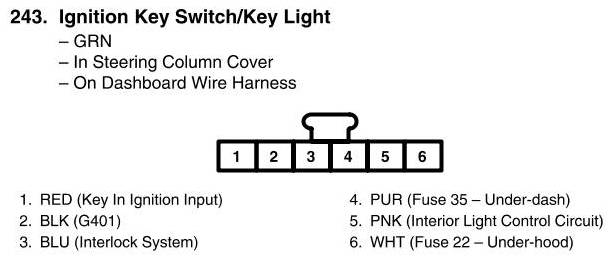 View 243 - Ignition Key Switch/Key Light Connector View