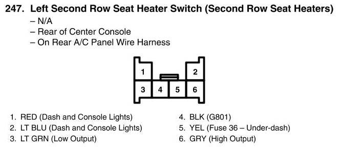 View 247 - Left Second Row Seat Heater Switch Connector View